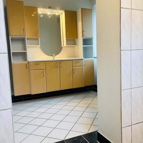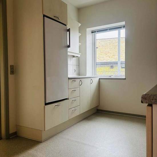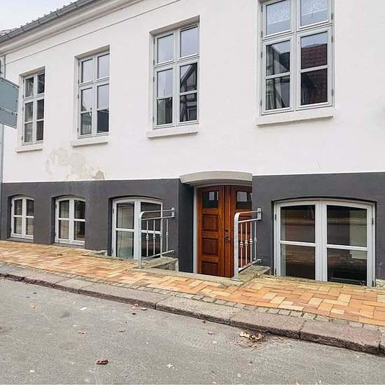 Sct Annagade 28 - ground floor for rent. Exceptionally well-laid-out apartment in the quiet Sct. Annagade in Bogense. Large bright rooms with lovely light. Bedroom with built-in wardrobes. An open kitchen which is the heart of the apartment (there is also a dishwasher). The bathroom has plenty of space and a stacked washer/dryer unit will be installed upon move-in. The apartment has its own entrance, and one of the two entrances is a really beautiful and charming front door. The hallway is large and wide with a built-in closet at the top of ...