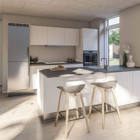 Her får I en splinter ny bolig fra 2024, som endnu er under opførsel, og som er energivenlig med et lavt varmeforbrug i en flot moderne stil. Boligen har store vinduespartier, genvindingsanlæg, 2 lækre terrasser samt en lille have. - 3 veldisponerede værelser - Lækker badeværelser med plads til tørretumbler og vaskemaskine - Lyst åbent køkken/alrum/stue - Direkte udgang til egen mindre gårdhave og terrasse. - Egen p-plads ved boligen - Stort redskabsrum hvor der er indlagt lys og strøm - Grund ca. 500 m 2 - Mulighed for at opsætte en ladesta...