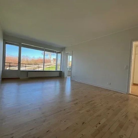 Nice 3-room apartment on Hoffmannsvej, raised ground floor, in beautiful surroundings The apartment is furnished with a newer kitchen/entrance hall, which provides access to all rooms except one. There are 2 rooms/bedrooms, where one of the rooms has access to the balcony and built-in wardrobes - and the other room has a French balcony. The bathroom is newer with a mirror/sink at one end and a combined washer/dryer and shower cabin at the other end. Kitchen with all major appliances. (Stove, dishwasher, fridge/freezer, and extractor hood)....