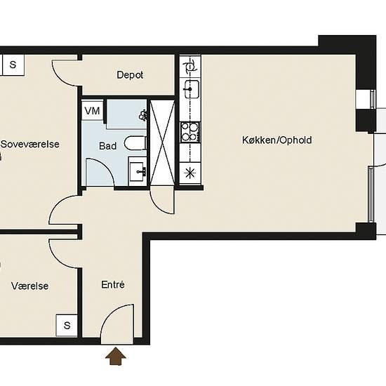 Good layout and terrace FIRST MONTH FREE!* Come to OPEN HOUSE in our beautiful show apartment WEDNESDAYS 16:30–17:00 and SUNDAYS 11:00–12:00. This beautiful 3-room ground-floor apartment includes: – two good bedrooms with built-in closets – the heart of the apartment, the lovely open-plan living room/kitchen – attractive white kitchen with all major appliances – private terrace – nice bathroom with stacked washer/dryer – storage room in the apartment, so you have everything close at hand THE NEIGHBORHOOD KobberEngen's location in Brøndbyves...