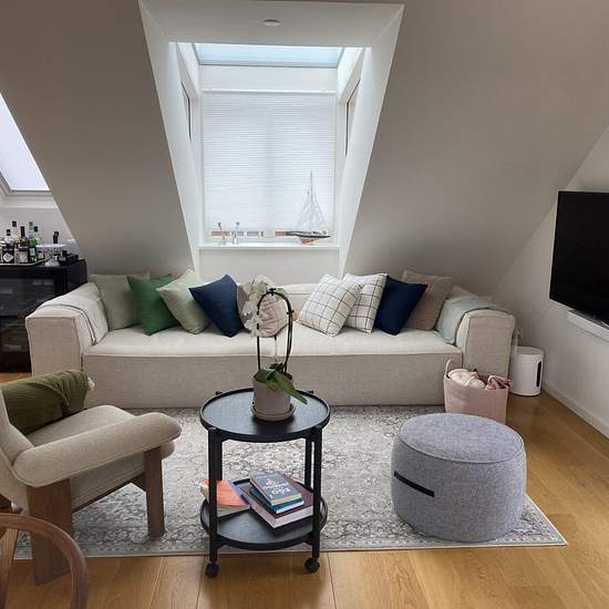 Welcome to this fully finished apartment, completely renovated and designed with a focus on light, comfort and functionality. The apartment is located at the top of the building, where there were previously drying attics, and therefore differs markedly from the other apartments in the property. Underfloor heating has been installed in all rooms, and Velux windows in both the knee-wall spaces and the bay windows create a unique light intake and a pleasant atmosphere year-round. The location is ideal in a child-friendly neighborhood close to O...