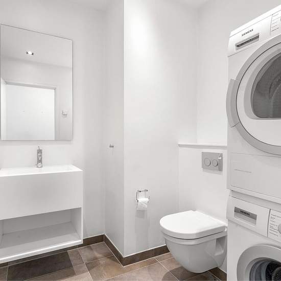 This magnificent apartment in Strandgade is located in the newer building on Krøyers Plads. The apartment is located on the 1st floor and faces south and therefore has a beautiful view of the Port of Copenhagen. It is an apartment with lots of light and a west-facing balcony. From the private parking in the basement there is an elevator directly up to the apartment. The apartment is 125 m2 and is distributed over 2 good bedrooms, one of which is a master bedroom with an associated walk-in closet and bathroom, a large open kitchen/living area...