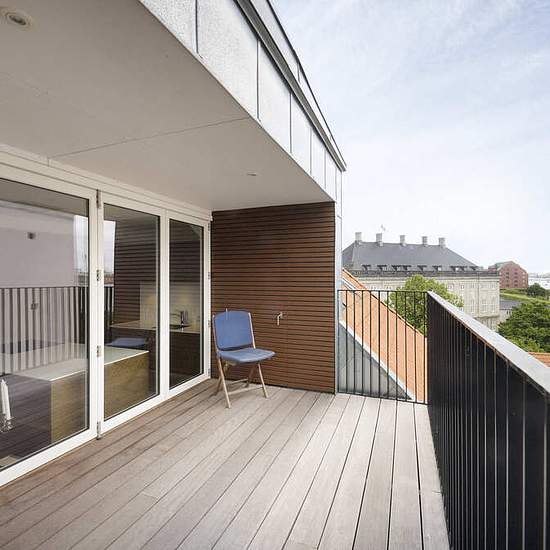 Let us welcome you into your new home, right by Amalienborg, Amaliehaven and the harbour. Take the elevator up to the 4th floor and step straight into your home when the elevator door opens. Here you get 116 square metres with a beautiful open-plan kitchen/dining area, your own terrace, a living room adjoining the kitchen, two bedrooms and a bathroom with a separate shower area as well as a tumble dryer and washing machine. From the terrace you also have views of both Amalienborg and the water. This is a perfect place for summer dinner parti...