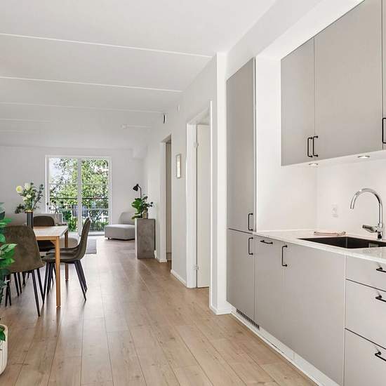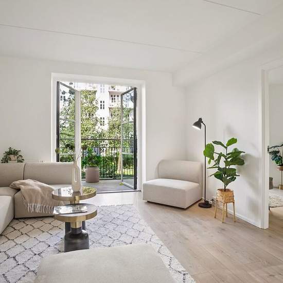 In a newer building from 2014 in Nørrebro lies this bright apartment of 101 m². The residence is located on the 1st floor and appears modern, inviting and functional – perfect for a couple or family who want plenty of space in the city. The apartment has an open kitchen-living/dining area as a natural gathering point, with all major appliances and plenty of room for a dining table. From here there is access to a large southwest-facing balcony overlooking the courtyard. The home also comprises three good bedrooms as well as a spacious bathro...