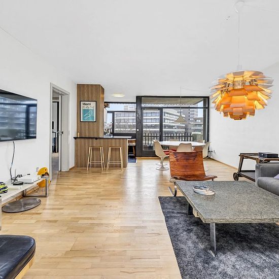 Are you looking for a move-in ready base in Østerbro for the next year? This bright apartment on the 4th floor on Holsteinsgade is fully furnished for a period of 1 year and offers classic Copenhagen charm with beautiful plank floors and fantastic natural light. The home is the ideal "plug-and-play" solution for those who want to move directly into a stylish home where everything from the comfortable furniture to the well-thought-out interior is already in place. The layout is optimal and includes a large living room with direct access to a...