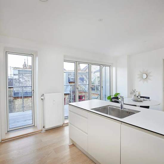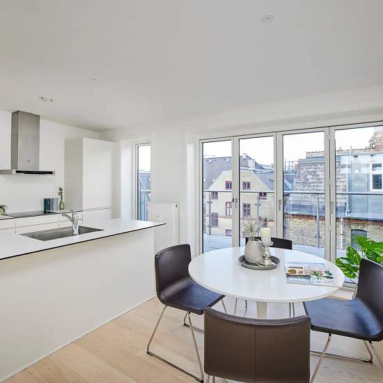 Denne skønne penthouse lejlighed er beliggende i en ejendom lige ved langebro og midt mellem København K, Amager, Christianshavn og Islands Brygge. Ejendommen blev opført i 1906 og står utrolig smuk og velholdt. Til ejendommen hører en vidunderlig og aflåst gård, som ligger ugenert fra vejen og hvor der er plads til både leg og hygge. Bygningen er i 5 etager og indeholder 16 boliglejemål og erhvervslejemål. Boliglejemålene e mellem 70 til 155 m2 og har en smuk udsigt til Christianshavns Volde. Det er ikke tilladt at holde husdyr i ejendomme...
