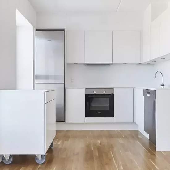 The Apartment The apartment appears bright and inviting. It is constructed in classic, contemporary materials. From the entrance hall there is access to a bathroom with underfloor heating, built-in spotlights, a separate shower enclosure and a washer/dryer column. In the bedroom you will find white cupboards and storage opportunities. The kitchen, which is finished in light materials, offers plenty of cabinet space, built-in appliances and is open to the living room. With its wonderful natural light, the living room provides a good setting f...