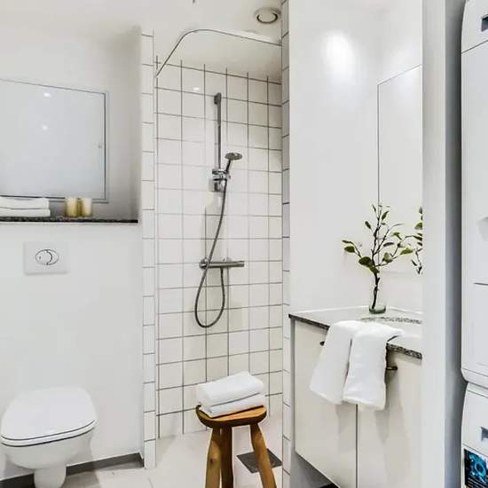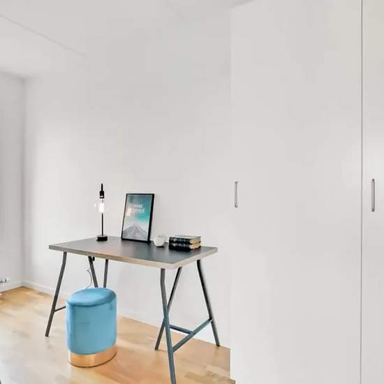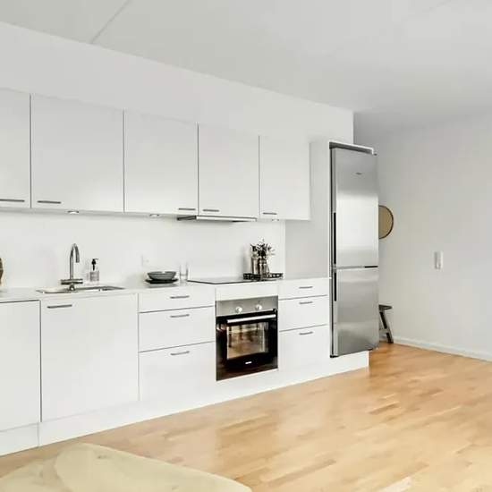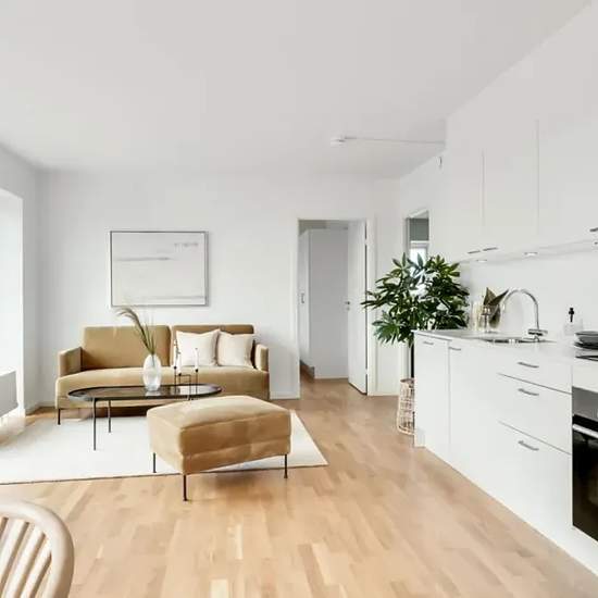 The apartment The heart of the apartment is a central living area with an open kitchen, dining space and living room. The apartment is finished in classic, contemporary materials and has large windows, which provide a fantastic influx of light. The kitchen, which is from Invita, appears bright and includes built-in appliances from Siemens. The bathroom is practical with underfloor heating, recessed spotlights, a separate shower niche and a washer-dryer column. The bedroom has fitted wardrobes with storage space. It is possible to apply for p...