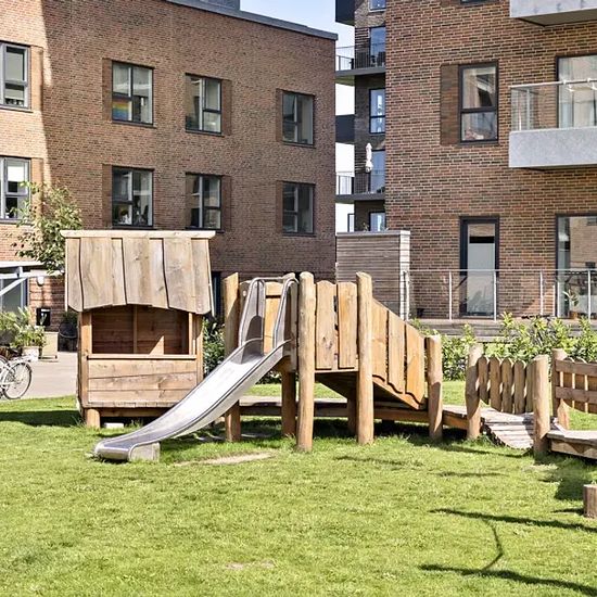 The Apartment The heart of the apartment is a central living area with an open kitchen, dining space and living room. The apartment is built in classic, contemporary materials and has large windows, which provide fantastic natural light. The kitchen, which is from Invita, appears bright and has built-in large appliances from Siemens. The bathroom is practical with underfloor heating, built-in spotlights, a separate shower niche and a stacked washer/dryer. In the bedroom there are installed wardrobes providing storage space. It is possible to...