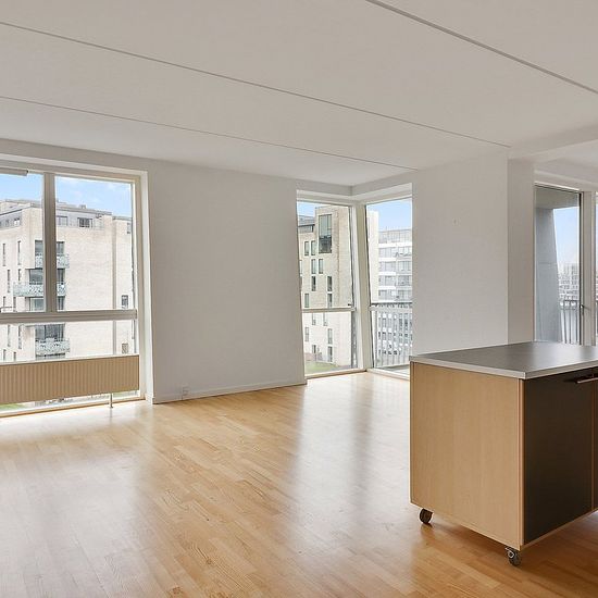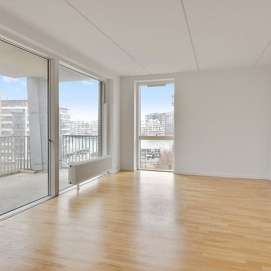 Are you dreaming of a modern home with fantastic natural light and a unique location by the water? Then this inviting 3-room apartment of 114 m² in Bassinhusene at Islands Brygge might be something for you. The apartment is located on the 4th floor and offers a well-thought-out floor plan with large, open living areas and lovely natural light from multiple sides. The heart of the home is the spacious kitchen-dining and living area combined, providing plenty of space for both a dining table and a sofa corner – perfect for everyday life and g...