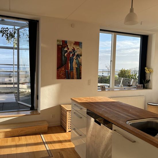 Penthouse by Amager Strand with a large private terrace — available for 12 months, fully furnished Address: Øresundsvej 160, 2300 Copenhagen S Rent: DKK 22,000 / month (excluding utilities) Availability: From 1 May 2026 for 12 months This exceptional penthouse is truly one of Copenhagen’s finest rental opportunities. Positioned directly by Amager Strand and offering uninterrupted panoramic sea views, the apartment combines luxury, comfort, and convenience at the highest level. The home spans 200 m² in total , featuring: Every daily convenien...