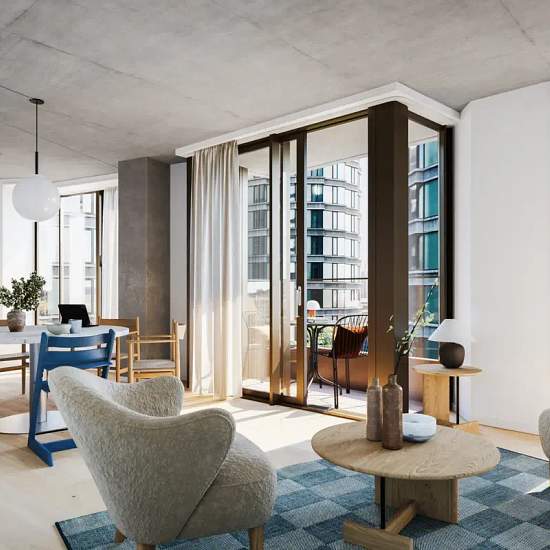 Postbyens markante silhuet med sine fire runde tårne er allerede blevet et nyt vartegn for den centrale del af København. I to af tårnene indrettes der 160 moderne lejeboliger, som nu udbydes til udlejning med indflytning i februar 2026. Lejlighederne varierer i størrelse fra to til syv værelser og er alle udstyret med altan med udsigt til byens liv og Postbyens grønne oaser. I Postbyen bor du i et helt nyt levende bykvarter med hoteller, butikker, restauranter, caféer, og meget mere. Dit nye hjem ligger omgivet af smuk arkitektur, og neden...