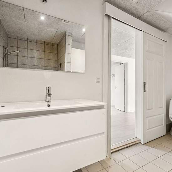 Ground-floor apartment of 92 sqm, arranged with an entrance hall, a kitchen open to a large living room, a large bedroom, a small room and a bathroom with a shower cubicle. In addition: garage, outbuilding/ storage shed and a large communal garden maintained by the landlord. Possibility to additionally rent a former shop unit with direct access, which can be used for many purposes. Water and heating are paid on account to the landlord. Electricity is set up directly with the power supplier. Ready to move in now.