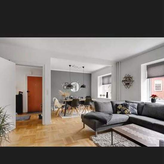 Very nice 3-room apartment of 84 m² with a nice kitchen and bathroom and a large bedroom. A wall has been put up between the living rooms, creating an extra room. Balcony and a large garden. Only 2 months' deposit, dogs are allowed, and there is a 500 DKK advance payment for water/heating. Spangsbjergade 26, ground floor left.