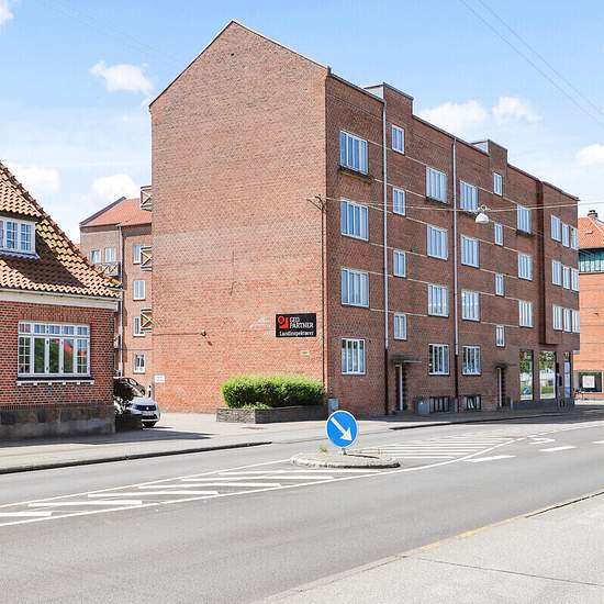 Stor flot ejendom over for Rådhuset med 4 opgange, ejendommen er 4 etager og opført i 1935 De fleste af husets 29 lejemål har altan mod gården, her er der mulighed for tilkøb af parkering Der er lille hyggelig have til alles brug, ligesom der er fælles skur til cykler og miljøstation I kælderen er der opbevarings rum og fælles vaskekælder