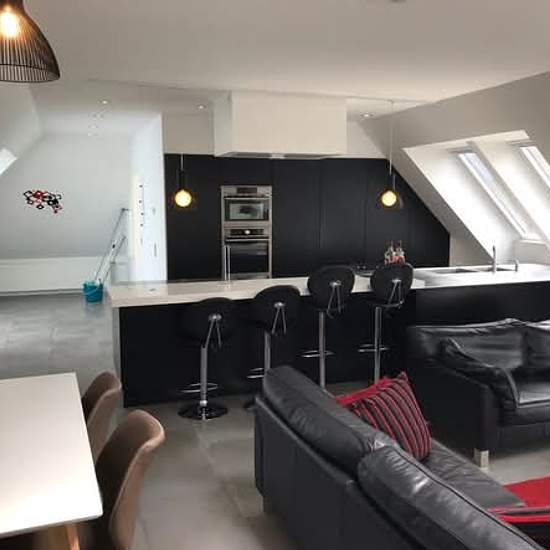 Large three-room apartment A large three-room apartment for rent in quiet surroundings approx. 1.5 km from the town centre. The apartment is located on the first floor and has a plasterboard ceiling and attractive tiled floors. Fitted with a private entrance, landing, large bathroom with washing machine and tumble dryer, combined kitchen and living room, and 2 good bedrooms. Good parking options. Rent kr. 8.950 Utilities kr. 1.200 3 months' deposit Available immediately