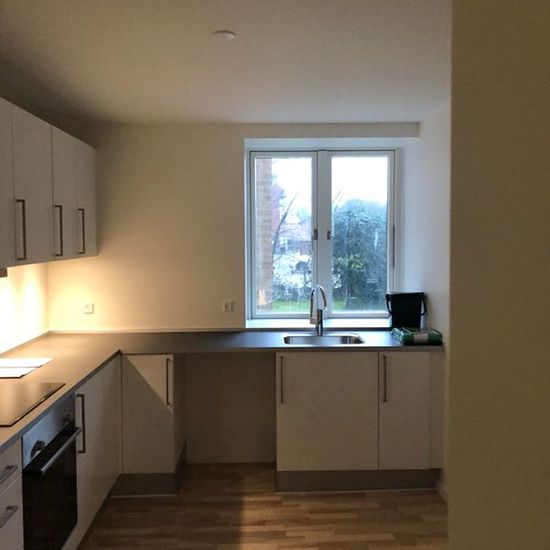 3-room apartment with a great balcony for rent in Esbjerg C. The apartment was newly renovated in 2012, making it very attractive. The apartment includes a beautiful bright and inviting kitchen with modern elements (drawers, etc.) New bathroom with white tiles, as well as a nice toilet arrangement – there are 2 rooms in the apartment. The kitchen and bathroom elements are from HTH, and all appliances are quality brands. There is also a balcony with a beautiful view. There is access to a lovely park-like garden, as well as a bike cellar ...