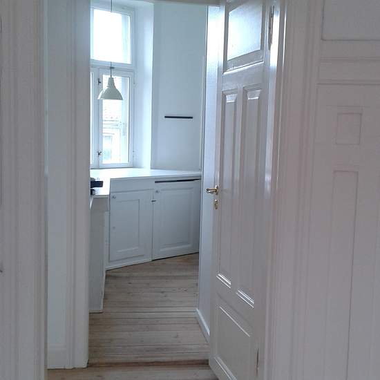 Cozy 3-room apartment (1st floor) in a quiet building for rent from 1 March 2026 or as soon as possible thereafter. The apartment contains: entrance hall, 2 living rooms, 1 bedroom, toilet/bathroom and kitchen. There are planed wooden floors, stucco ceilings and wood panelling on the walls in one of the living rooms. The rental includes a small storage room, and there is access to a communal laundry cellar, covered bicycle parking, a drying area and a large enclosed west-facing courtyard garden.