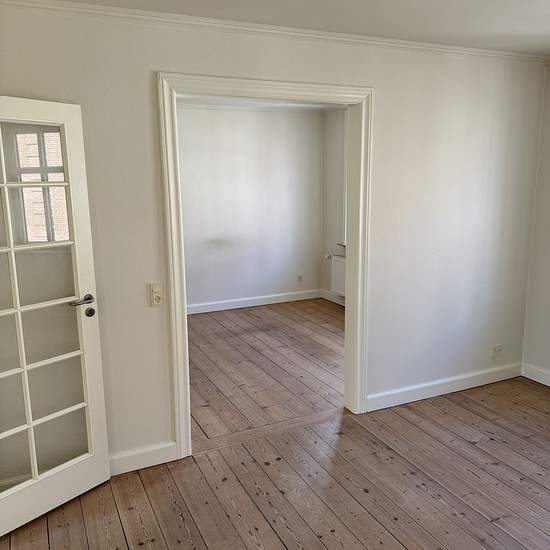 Do you want a 3-room apartment with its own balcony in a quiet, well-kept building? Available for rent from April 1st is a nice 3-room apartment in a building with a shared courtyard that is shared with 4 other quiet, mature tenants. The apartment consists of a kitchen with dishwasher, oven and fridge/freezer; a bathroom with shower cabin; a room with access to a terrace; and a living area consisting of 2 rooms, which can possibly be converted into an extra bedroom. There is a shared laundry room in the rear building, where there is also a...