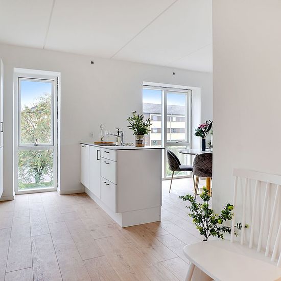 Stylish and thoroughly executed 3-room apartment with a balcony in Frederikssund Are you looking for a lovely home in a newly built apartment with a well-thought-out floor plan that suits a single person, a couple, or a small family? Then take a look at this three-room apartment in Frederikssund. Your future home is located in beautiful, central surroundings where you can walk to most places. With the keys to this place, you can look forward to becoming part of a city-close neighborhood with less than a kilometer to grocery stores, special...