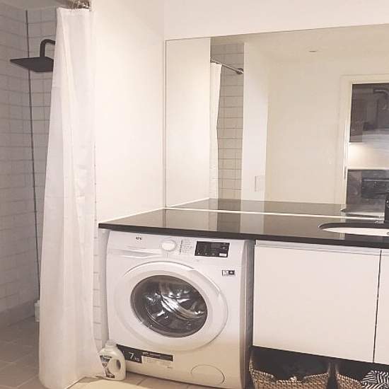 The apartment includes: entrance hall, a small room, a nice, spacious tiled bathroom with shower/ toilet and a sink recessed into a granite countertop with an under-sink cabinet. Washing machine connected. In addition, a nice, newer kitchen with all major appliances open to the living room with access to a very large balcony overlooking the courtyard. Bedroom with double bed and built-in wardrobes. Attractive parquet floors throughout. For rent furnished from 1 December for 2–3 years. Key info: 2600 Glostrup – Østbrovej