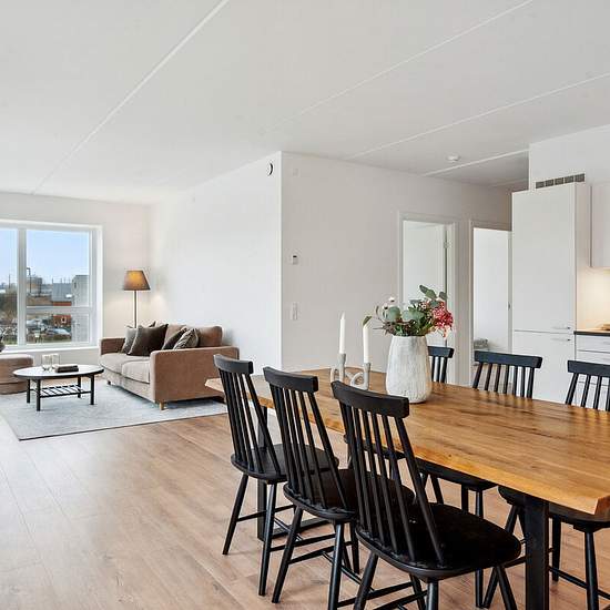 Welcome to Smedegaarden at Sydvestvej 57-61 in Glostrup. Here we rent one- to four-room apartments that suit your needs, whether it's family life or the first time you move out from home. The apartments have underfloor heating and an elevator that takes you from the parking basement to your front door. All rentals include a storage room inside the apartment, and some storage rooms are placed so they can be used as a walk-in closet. All apartments have their own balcony or terrace; some even have two balconies or terraces. Major appliances ...