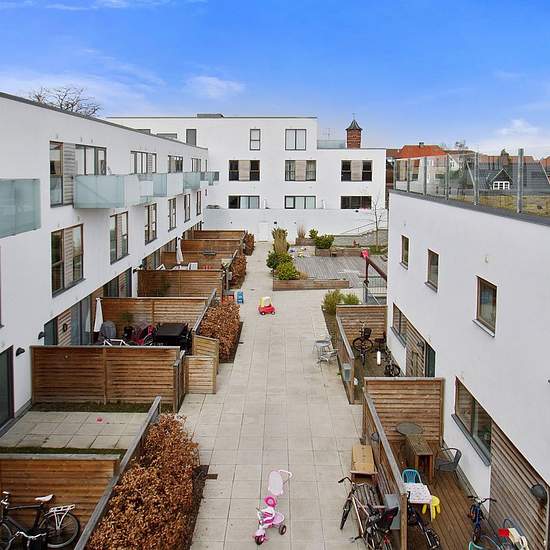 The apartments are arranged on either one or two levels. The three terraced houses are two-storey. All the residences are designed with good, bright kitchen-living areas, a bathroom with laundry facilities and 2 to 4 separate rooms. All units have either a balcony or a terrace. Appliances The homes include all major appliances, including a washing machine, tumble dryer and dishwasher. Pets Tenants may apply for permission to keep an indoor cat and a dog at the address. Outdoor cats are not allowed. See our full pet policy here. Parking Th...