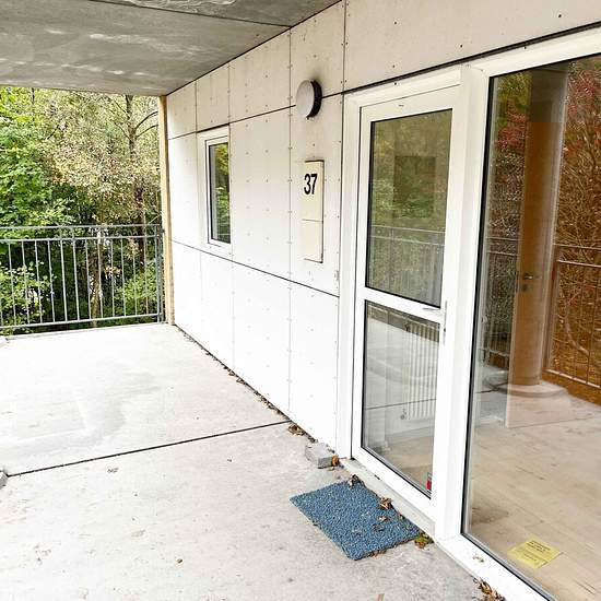 I udkanten af Haderslev, ud mod åbne marker og tæt på fjorden ligger denne lejlighed. Der er en bred svalegang hvor der er mulighed for at stille et lille bord og et par stole.