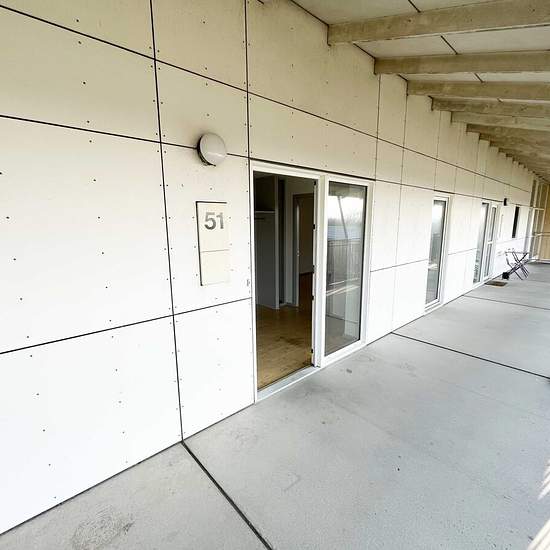 I udkanten af Haderslev, ud mod åbne marker og tæt på fjorden ligger denne lejlighed. Der er en bred svalegang hvor der er mulighed for at stille et lille bord og et par stole.