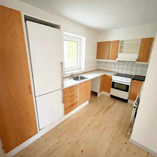 I udkanten af Haderslev, ud mod åbne marker og tæt på fjorden ligger denne lejlighed. Der er en bred svalegang hvor der er mulighed for at stille et lille bord og et par stole.
