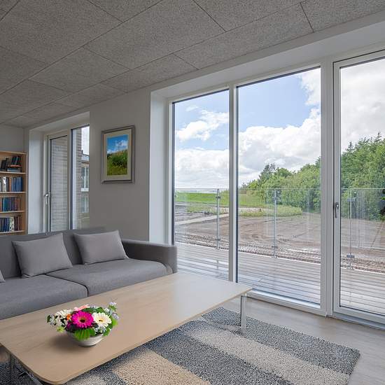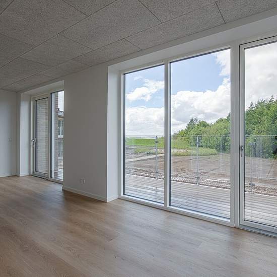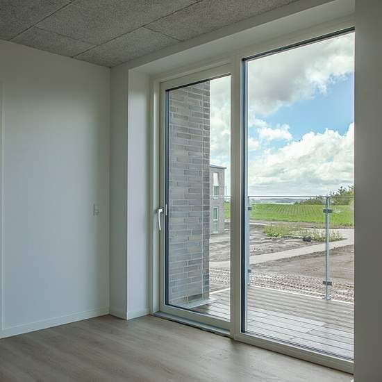 **Description** Welcome to Housing Type C 91m² – a modern and functional home with a focus on comfort. As you enter this home, you are greeted by an inviting entrance. To the left, you will find a practical coat rack for outerwear, and to the right, the door leads into the utility room. Here, there is ample workspace with a countertop, two base cabinets (Svane), and space for both a washing machine and a dryer – ideal for everyday needs. The apartment's bathroom is also connected to the entrance. The bathroom is elegantly designed with a ...