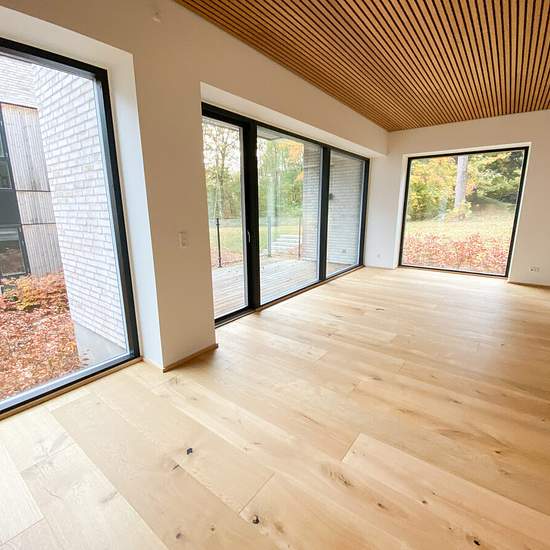 Skovhaven består af 26 boliger, hver tegnet med omhu af Kjær og Richter fra Aarhus, hvor nordisk minimalisme skaber ro og elegance. Store vinduespartier giver et sublimt lysindfald og et udstrakt udsyn over det bølgende landskab og fjorden. Indenfor møder du detaljer som herregårds-plankede gulve og lofter i egetræ, der elegant forbinder hjemmets indre med skovens natur. Køkkenet fra Svane i hvide elementer inviterer til madlavning og samvær, mens middagsbordet rammer samtaler mod udsigten som et levende maleri. Udsigten flankeres af Freds...