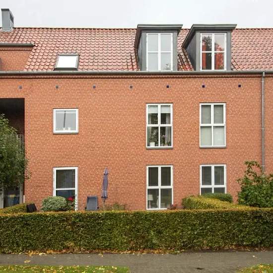 Mejerigården is located in the central part of Hammel on Nørregade and consists of two three-storey blocks of red brick built in 1994–95. The development comprises 51 dwellings, which are distributed as two- and three-room apartments. The complex includes a communal function room, a shared laundry and an adjoining playground, and the apartments are well laid out with both wardrobes and a stove with an extractor hood. In addition, the development is close to the bus station and the shops in Hammel’s centre. The ground-floor apartments have pr...
