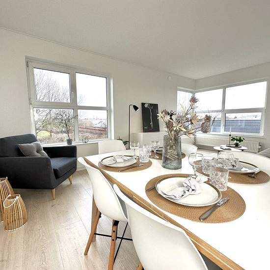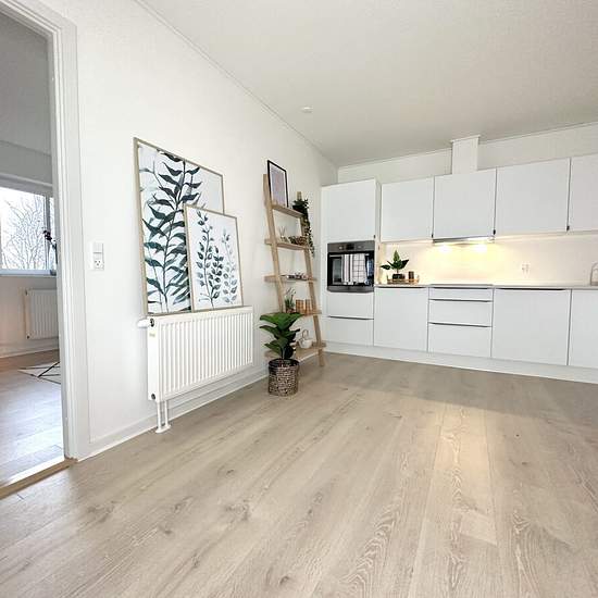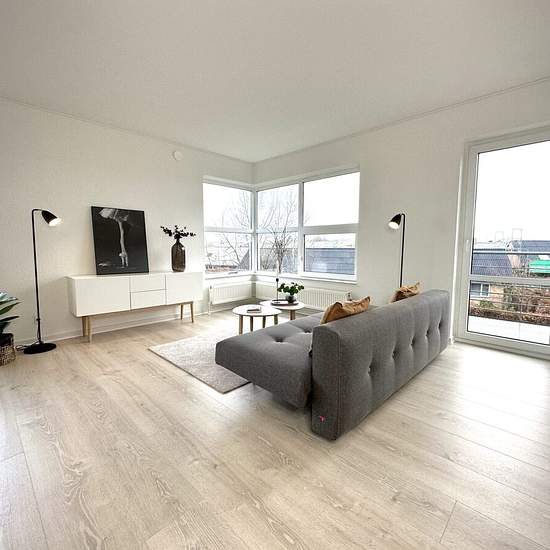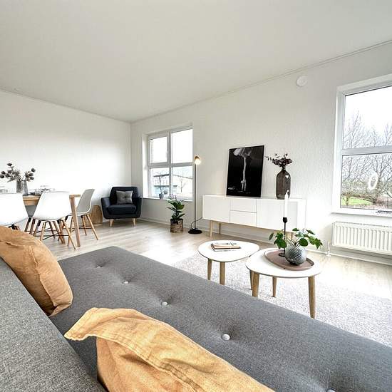 Popular, very central area in Hedensted Overholmvej is a very popular place for the slightly older generation as well as families with children. A quiet base for those who want to enjoy the best of both town and nature. We love this apartment because the layout is excellent. A large kitchen with plenty of counter space and many drawers. From the large living room there is direct access to your own secluded south/west-facing terrace and a small garden. You will be living very close to the Rema1000 supermarket and, not least, daycare facili...