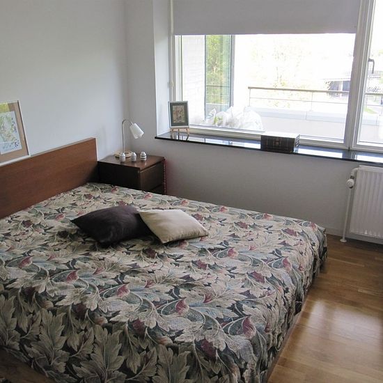 The apartment includes: entrance hall, beautiful kitchen/living room with access to a large west-facing balcony, a sunny living room with access to an east-facing balcony, and a large master bedroom with a built-in wardrobe and its own bathroom with bathtub and laundry column. Additionally, a children's room/office and a guest bathroom with shower. The apartment is located in a beautiful building close to Strandvejen, Hellerup Harbor, and only 500 meters from Hellerup Station. The building has an elevator and intercom. Private parking space ...
