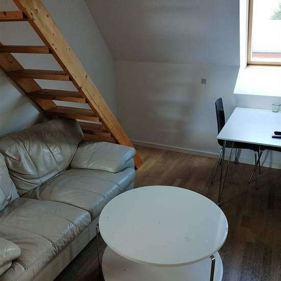 Bright and spacious apartment located in scenic surroundings on a country estate. The apartment has a very charming and interesting layout – entrance hall, shower bathroom, large eat-in kitchen open to the living room, bedroom, and two rooms that are accessed via their own staircase. The property includes good outdoor areas with room for everyone. A property with only quiet residents. Please note that a/c charges cover water, heating and electricity. The apartment is located on the first floor. EMAIL