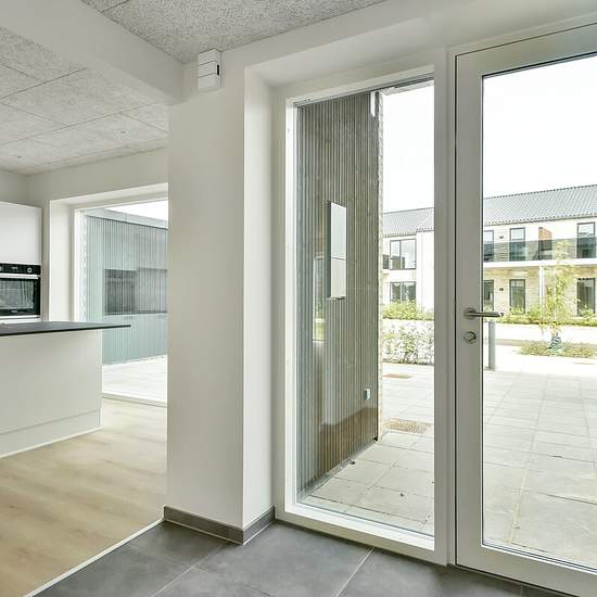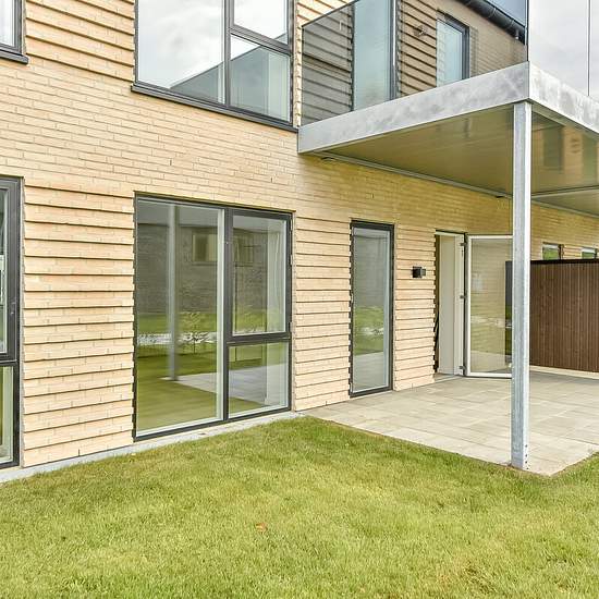 Lovely ground-floor apartment in Lind This apartment is laid out with an entrance hall, a bathroom with space for a washing machine and dryer, an open-plan kitchen and living room, and two bedrooms - both with fitted wardrobes. From the living room there is access to a south-facing garden with a covered terrace, and there is also a covered area at the apartment entrance that can be used for sitting. The apartment is finished with high-quality materials, has a good layout and is particularly bright. There is a small storage room as well as g...