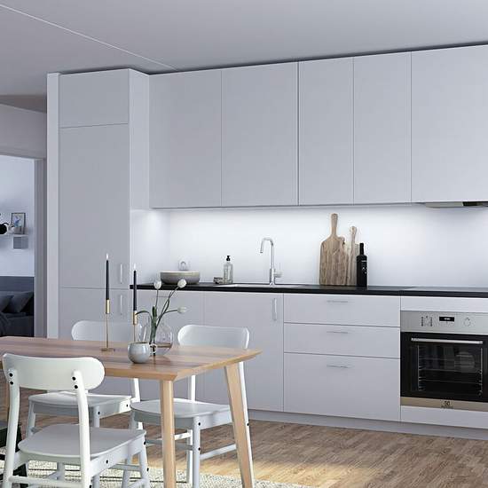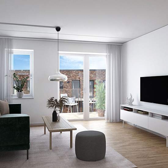 The open-plan layout of the kitchen-living area makes it easy to accommodate both a dining table, a seating area and a small workspace – and the light coming in from both sides accentuates the feeling of spaciousness. From your balcony, which faces southwest, you can enjoy the evening sun. Everything in the apartment is kept in classic tones, so it's easy to put your own stamp on it. Please note that the images shown are not from this particular property, so views, rooms, etc. may vary. The images are therefore only an example, and the fina...