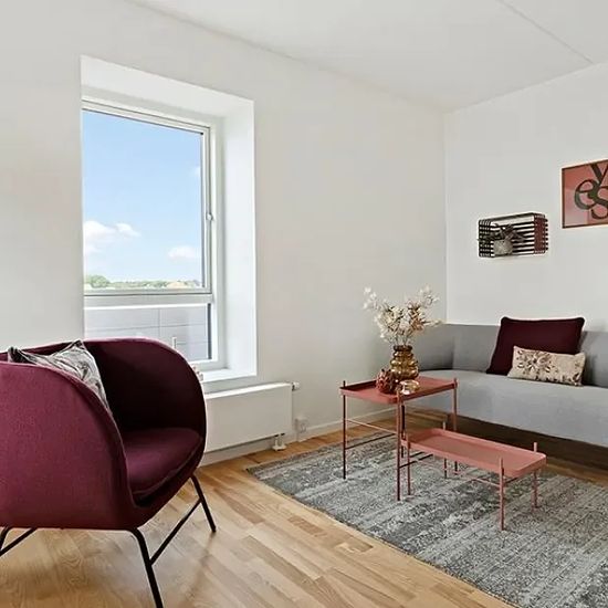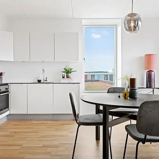 The Apartment The apartment appears bright and spacious with an open kitchen, dining area, and living room. Quality is paramount, featuring a matte lacquered ash wood floor, a white kitchen from Invita equipped with the latest appliances—all from Bosch Siemens with energy class A+. The bathroom is large enough to accommodate the busy family and has built-in underfloor heating for the cooler days. In the bathroom, you will also find an integrated energy-efficient washer and dryer stack from Bosch Siemens. NOTE: If measurements of the apartme...