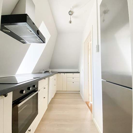 Hjallerup is a town in Vendsyssel with approximately 4,300 inhabitants, located 20 km northeast of Aalborg, 10 km west of Dronninglund and 21 km southeast of Brønderslev. The town belongs to Brønderslev Municipality and is situated in the North Jutland Region. 3-room apartment Toilet Kitchen Access to garden and shared terrace Parking outside the door Note: A dog may be allowed by arrangement.
