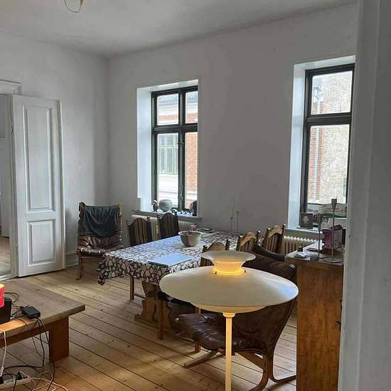 Do you want to live in a completely newly renovated luxury apartment with high ceilings in Hjørring's old town? Then you have the opportunity to take over this apartment as early as October 15, 2025. You have a private entrance to the apartment directly from Stokbrogade. From here, you go to the apartment on the first floor via a spiral staircase. From the entrance, you have access to the kitchen on your left side and a brand new New York-style bathroom on your right side. Straight ahead in the entrance, you come to the apartment's large liv...