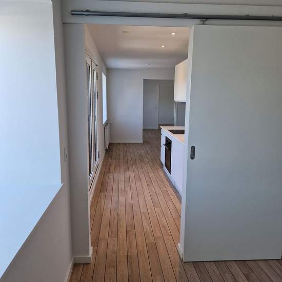 Description Newly renovated 3-room apartment with all major appliances! Attractive apartment in a newly renovated building with a good location in Hjørring. The apartment offers 86 well-utilized square meters and is close to both the Metropol shopping centre and the town's pedestrian street. The home includes a bright kitchen with access to a small, charming balcony, two rooms and a bathroom. All necessary major appliances are included: washing machine, tumble dryer, extractor hood, dishwasher, induction hob, oven and fridge/freezer. In...