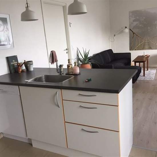 The apartment was built in 2013 and is insulated to current standards. It has water-scraped plaster walls throughout and underfloor heating. There are individual meters for utilities. A heat pump provides low-cost heating, and a Genvex system automatically ventilates the apartment. All appliances are included, including a dishwasher, tumble dryer and washing machine. There is an elevator and the building is wheelchair accessible. There is a large communal area in the courtyard. Cleaning of the stairwell and common areas is included in the rent.