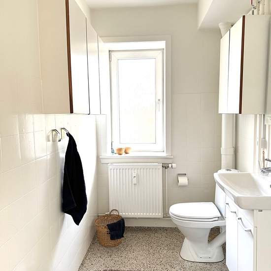3-room apartment Welcome inside! The apartment is well laid out with an entrance leading to a hallway that distributes to the other rooms. From here there is access to a bathroom with underfloor heating, a bright, spacious kitchen with a dishwasher, a room, a living room and a bedroom. There are wooden floors and white ceilings throughout the apartment. In the stairwell by the apartment's front door there is a small storage room that belongs to the apartment. The property is close to shopping and not far from the pedestrian street and L...