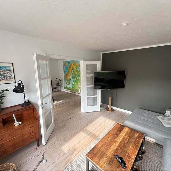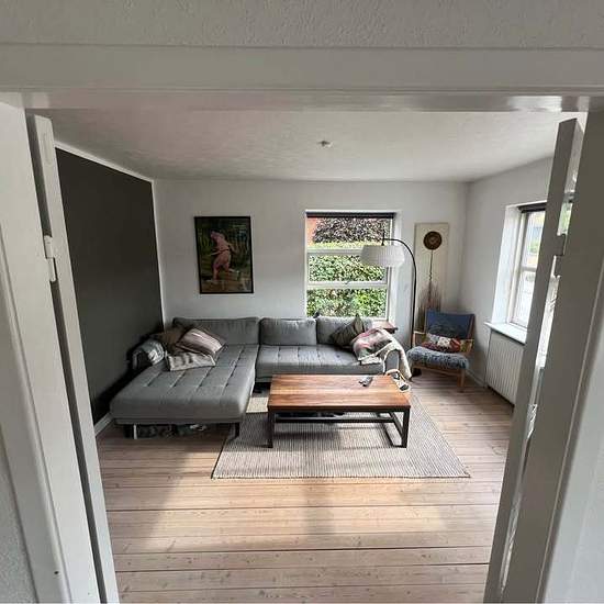 Cozy three-room apartment. Quiet residential street. Within walking distance to the city center. Nice bright rooms. Lovely bathroom with shower and underfloor heating. Large kitchen with space for a small dining table. Induction stove and dishwasher. Bedroom with closet space. 100 m to shops (Kvickly and Lidl). Fiber optic internet installed. Storage room in the basement. Washing machine in the basement. Parking in the courtyard. Garden with lawn and terrace. No pets. Utilities not included. Deposit: 3 months' rent. Available from 1 November...