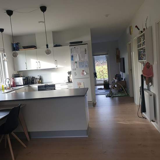 This lovely 3-room apartment in Hornbæk is for rent. The apartment has been recently renovated and appears bright and modern with quality materials throughout. The kitchen is relatively new and attractive, with a dishwasher, fridge/freezer and built-in oven. The kitchen counter is arranged so that chairs can be placed on one side — perfect for everyday meals and guests. The bathroom is nice and well maintained. The apartment has good, bright rooms and the bedroom is fitted with cupboards that provide ample storage. The apartment includes ...