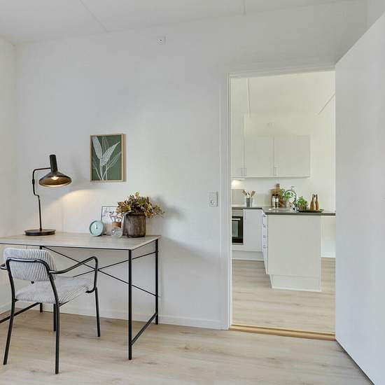 3-Room Apartment of 71 m² in Horsens Kollegievænget 26, 1. 16., 8700 Horsens Fjordglimt - Rental No. Bright and modern apartment in idyllic surroundings Fjordglimt is for you if you want a modern, bright home in green surroundings – while also living close to the city's life and experiences. In this rental property with 3 rooms, you will get: - Beautiful and functional corner kitchen in open connection with the living room - Living room with a French balcony or terrace - Modern and spacious bathroom with the option to install a comb...