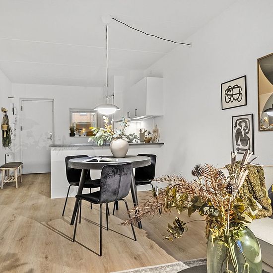3-room Apartment of 68 m² in Horsens Kollegievænget 26, 1st floor, 2nd door, 8700 Horsens Fjordglimt - Lease no. 9-648-108 Bright and modern apartment in idyllic surroundings Fjordglimt is for you who want a modern, bright home in green surroundings – and at the same time live close to the city's life and experiences. In this rental apartment with 3 rooms you get: Beautiful and functional corner kitchen with all appliances in an open connection with the living room Living room with southwest-facing French balcony Modern and spacious bathroom...