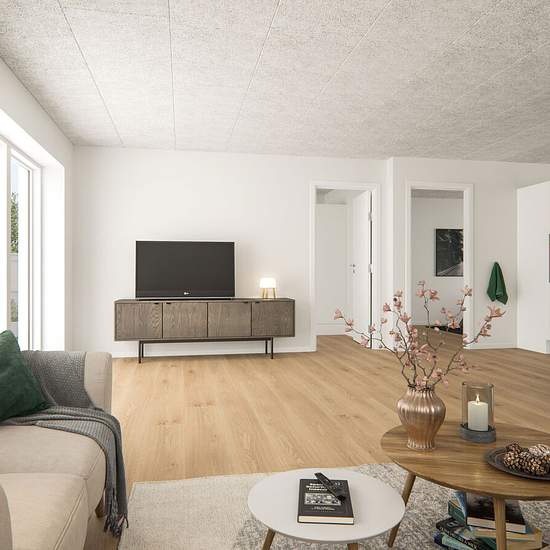 3-værelses Rækkehus på 95 m² i Jelling Havegangen 23, 7300 Jelling Haverne Jelling - Lejemålsnr. 9-666-41 Velkommen til Haverne i Jelling – moderne étplansrækkehuse i naturskønne omgivelserI Haverne finder du 57 lyse og velindrettede rækkehuse i ét plan, opført med fokus på kvalitet og funktionalitet. De rummelige boliger byder på troldtektlofter, der sikrer behagelig akustik, og en gennemtænkt indretning, hvor lys, komfort og hverdagsliv går op i en højere enhed. I denne 3-værelses lejebolig får du: Entre/ bryggers med vaskemaskine & tørret...
