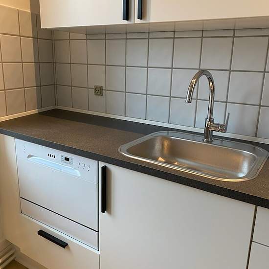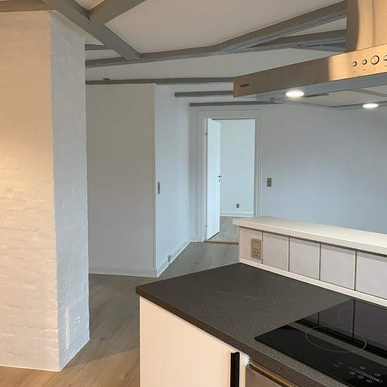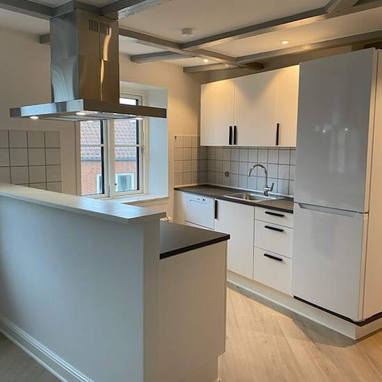 Very cozy apartment with exposed beams, located in the heart of Kolding. The apartment has undergone a major renovation, including a brand-new bathroom with a washer-dryer unit. A truly lovely apartment that should be seen.